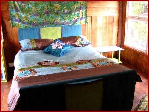 The main dwelling is constructed of timber and mud brick and has recently been revamped internally. This traditional bush cottage has one upstairs bedroom and one bedroom down stairs, separate kitchen, separate bathroom and toilet. The verandas offer an amazing elevated view of the surrounding bush and hills. Evenings are spectacular with a variety of wildlife frequently observed from this convenient vantage point. The single title also includes a second studio dwelling and garage. The studio offers potential for further development. Water supply is by from a stream and a natural spring. The properties natural water supply has a highly beneficial analysis. Water heating is by wood fire utilising the abundant supply of fallen branches.